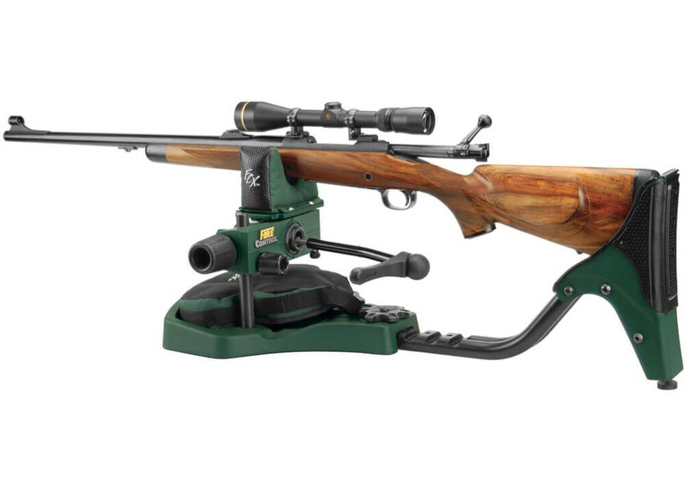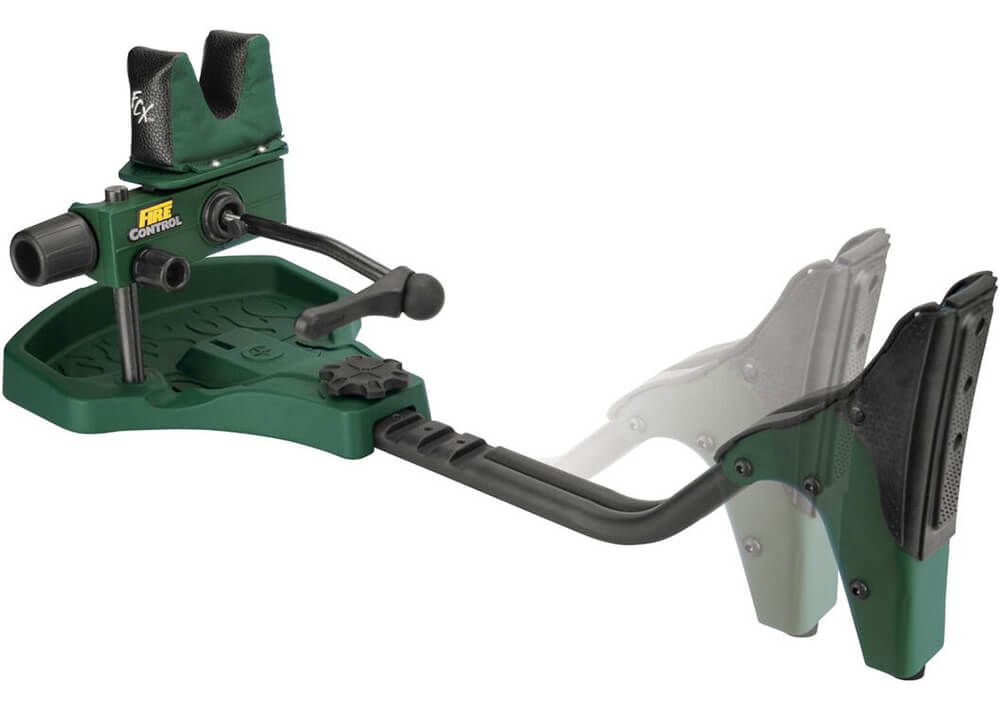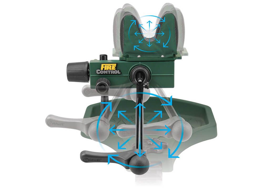 - Mécanisme Fire Control™ : Système d’alignement avancé contrôlé par un bras joystick. Il permet de positionner parfaitement la croixhairs (crochet de visée) en toute simplicité. En se relâchant, il maintient le fusil dans cette position précise, permettant au tireur d’être détendu et précis lors du tir, contrairement aux supports classiques qui nécessitent de pousser ou tirer pour ajuster la position.