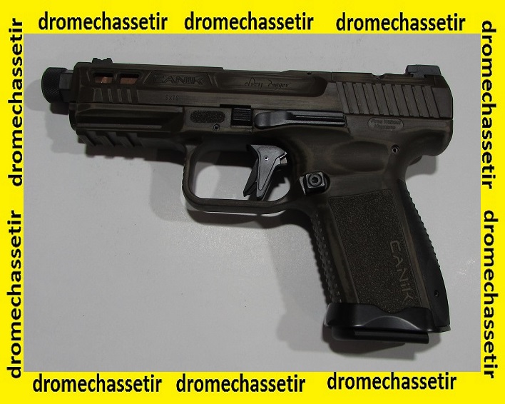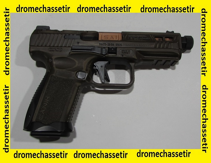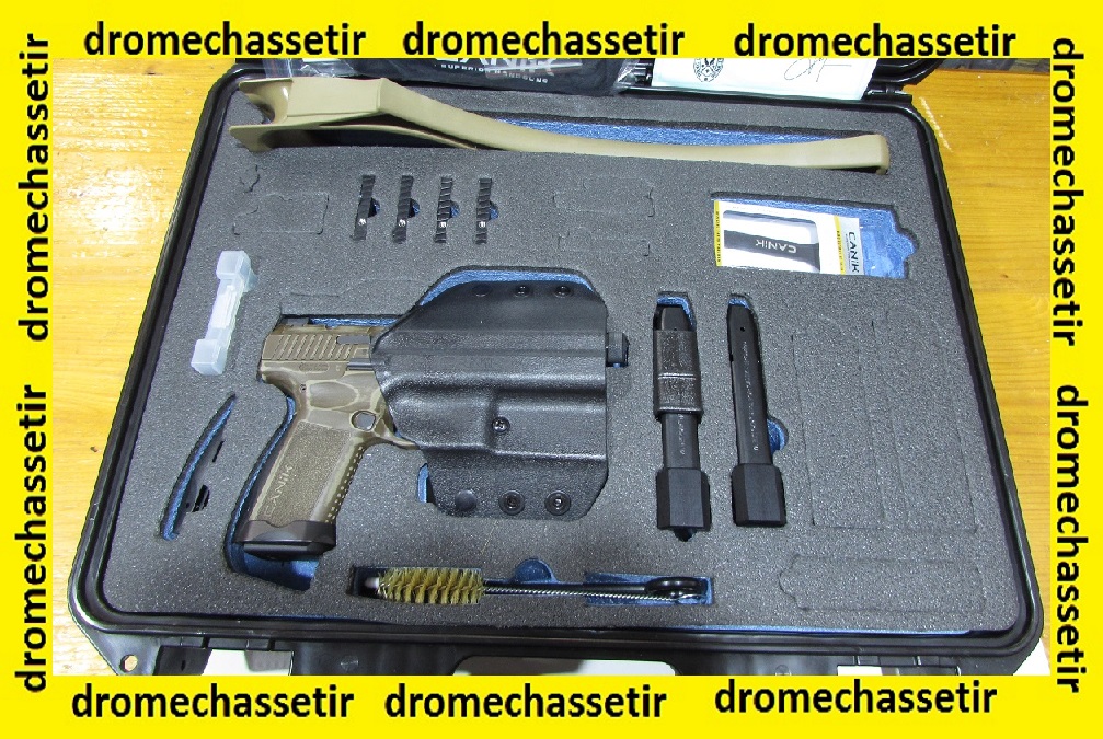 Le Pistolet semi automatique Canik TP9 Elite Combat édition limitée Elven Dagger est livrée en mallette avec 2 chargeurs supplémentaire, magwell, crosse armbrace …
