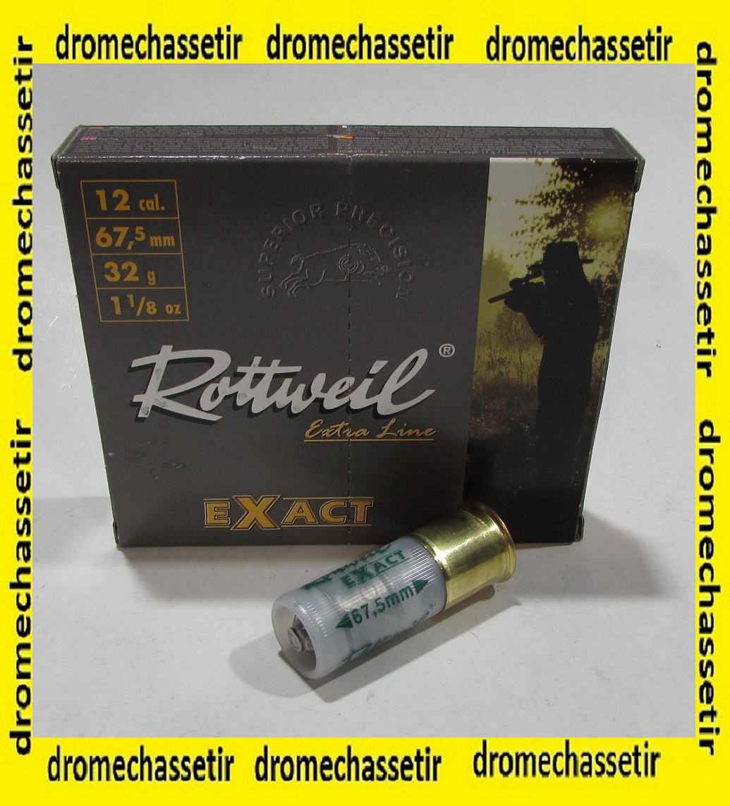 Boite de 10 cartouches Rottweil en calibre 12/67,5, Balle Exact en 32 grammes avec une tres bon pourvoir d’arret