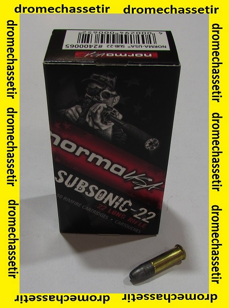 boite de 50 cartouches de la marque Norma en calibre 22lr Subsonic avec une ogive plomb  Hollow Point  poids 40 grs