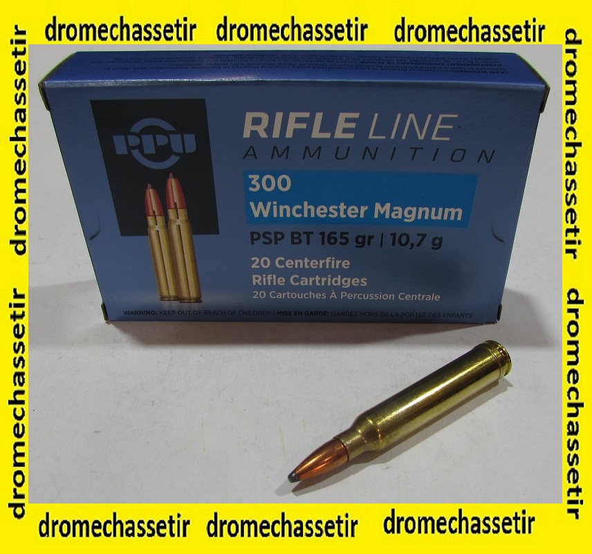 1 Boite de 20 cartouches de calibre 300 Winchester Magnum, 165 Grains PSP BT pour la chasse et le tir de loisir