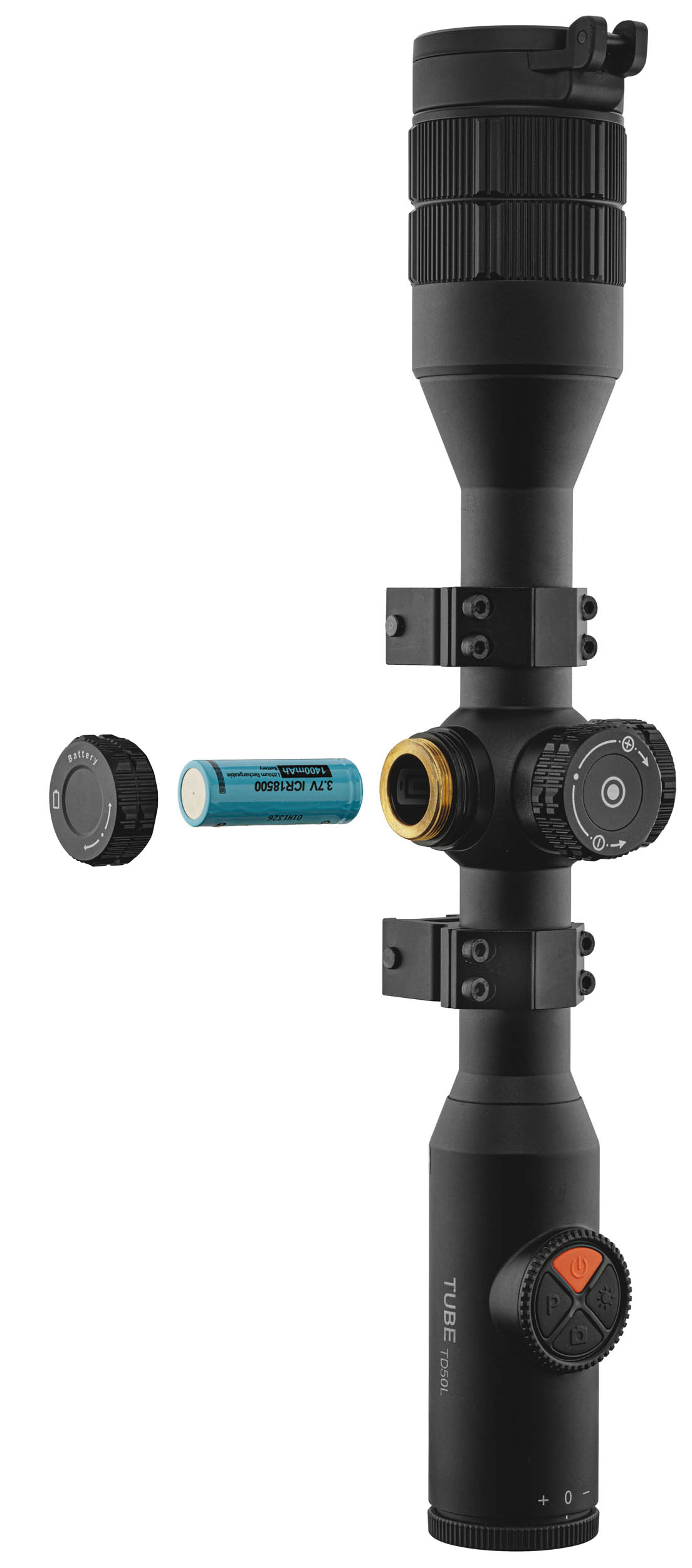 Les télescopes numériques NV TD50L sont alimentés par deux types de batteries rechargeables : une batterie intégrée de 6600mAh et une autre batterie remplaçable de 18500 située dans le compartiment de la batterie qui offre une autonomie de plus de 13 heures. Lorsque la batterie du compartiment est déchargée, le télescope bascule automatiquement sur la batterie intégrée. La batterie 18500 remplaçable peut être retirée et remplacée en quelques secondes sans qu’un arrêt intermédiaire ne se produise sur le fusil.