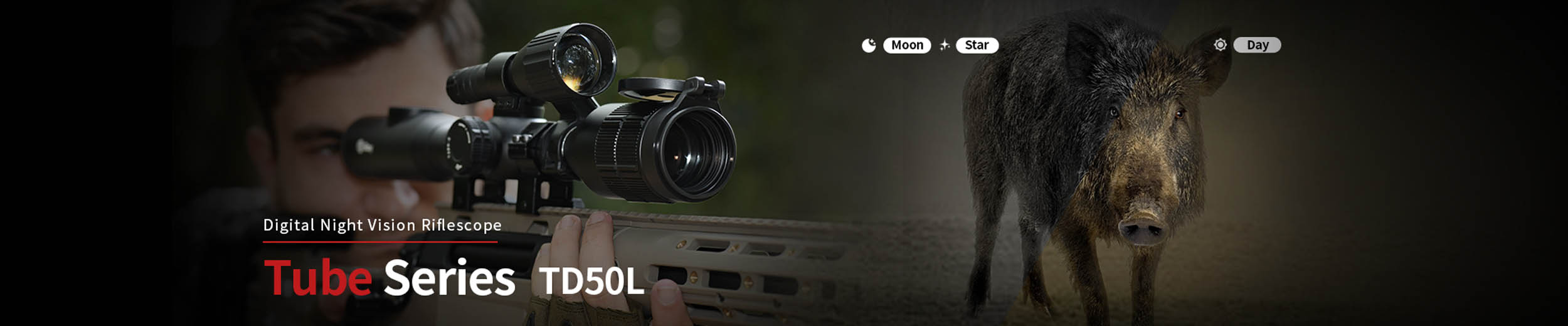 La combinaison d’un objectif de 50 mm/F1.2 de grande taille et de qualité, d’un capteur CMOS HD d’une résolution de 1440×1080 avec des performances à très faible luminosité et un affichage haute définition, d’un puissant illuminateur IR, d’un algorithme intégré très efficace, etc. font du TD50L le parfait fusil à vision nocturne numérique avec une excellente sensibilité nocturne et des capacités de vision nocturne pour les utilisateurs, même lors des nuits sans lune.