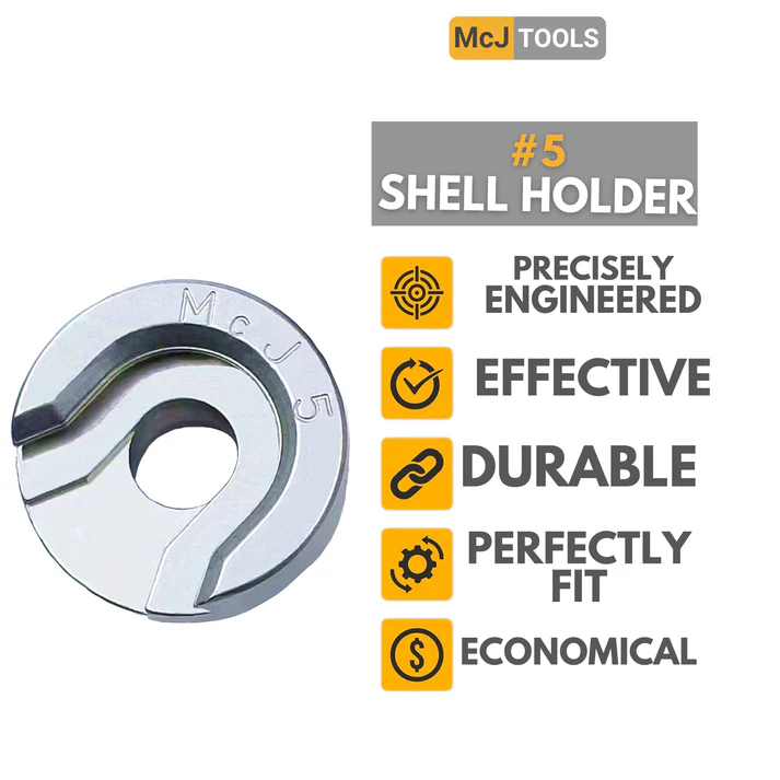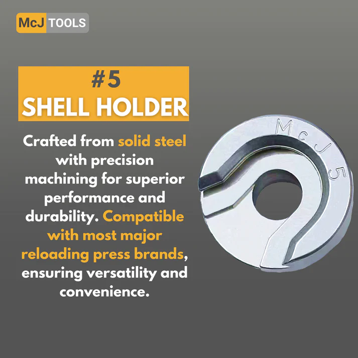 Shell Holder en Acier usiné de marque MCJ TOOLS, numéro 5 pour toutes les presses de rechargement classique et sur les amorceurs manuels