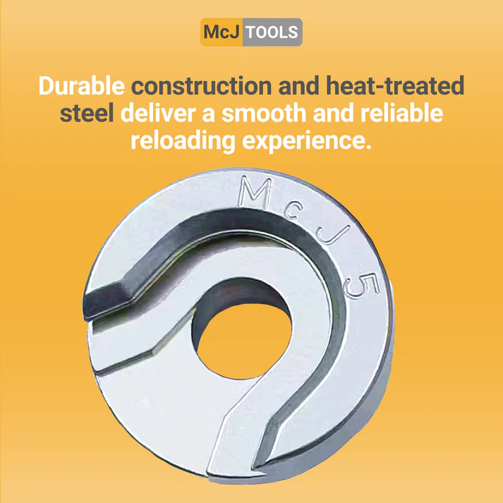 Optimisez votre équipement avec les supports de douilles McJ Tools #5 pour un chargement précis et efficace des cartouches.